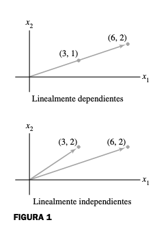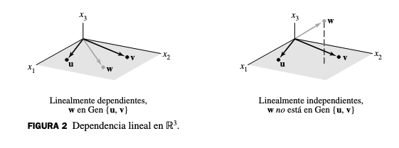 - Dependencia lineal: Existe una relación no trivial que da el vector cero