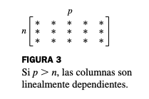 Si un conjunto contiene más vectores que entradas en cada vector, entonces el conjunto es linealmente dependiente.